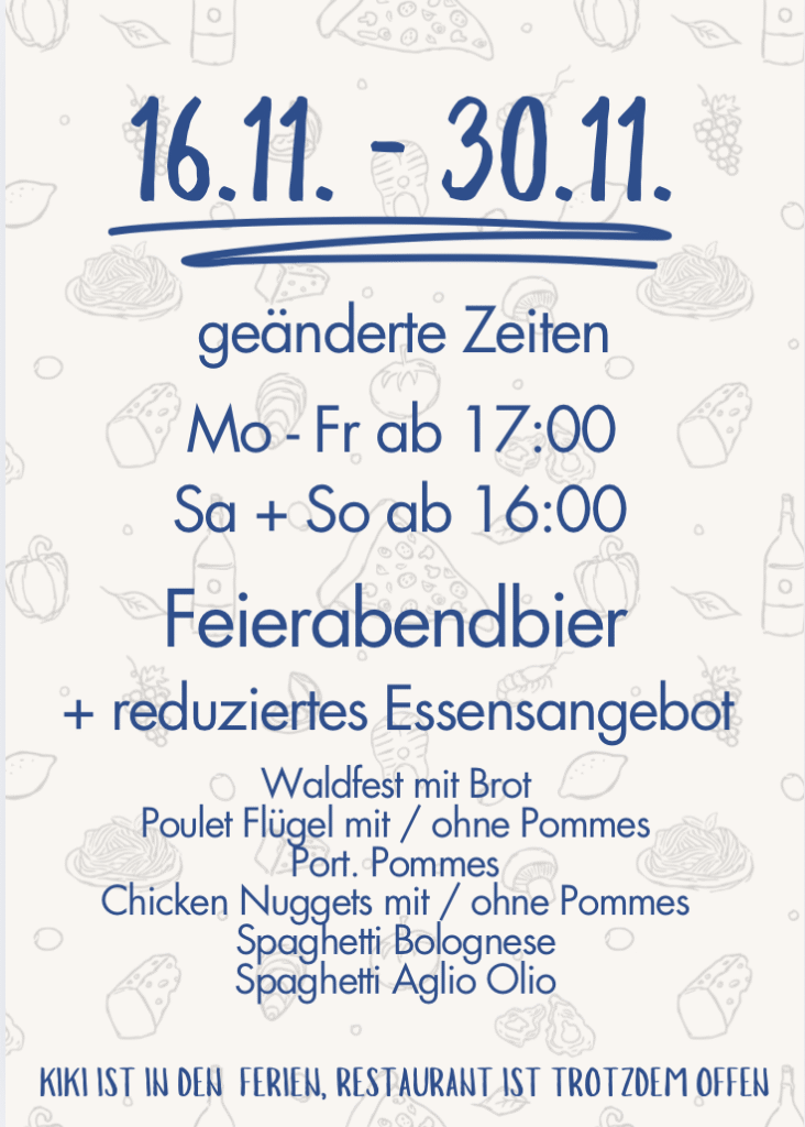 Sind in Wallbach oder näherer Umgebung gut frequentierte Feste / Events, halten wir das KiKi an diesen Tagen entweder geschlossen oder öffnen zu reduzierten Zeiten. Vielen Dank fürs Verständnis.